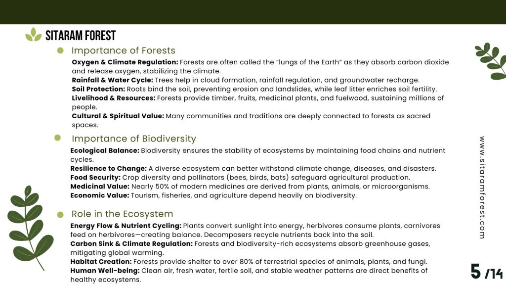 Forests are the lungs of our planet. They sustain life in ways most of us rarely stop to appreciate. From the oxygen we breathe to the water we drink, from climate stability to biodiversity โ forests are at the very core of human survival and planetary health.